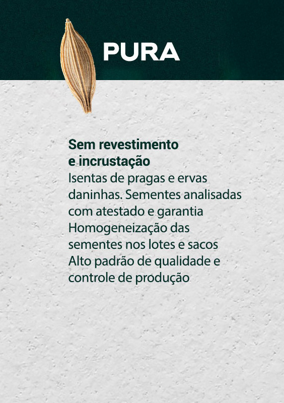 Especializada na produção e comercialização de mixes de sementes para pastagens e plantas de cobertura, a empresa oferece um portfólio completo desenvolvido para alto desempenho em diferentes regiões.